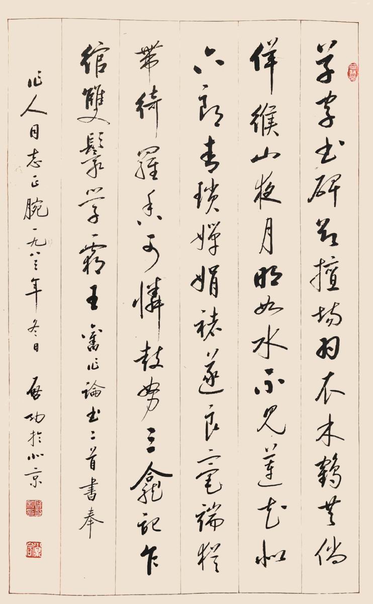 备注:款式:旧作论书两首奉作人同志正腕,一九八三年冬日 启功于北京。钤印:启功私印,小乘客。备注:2404xm-bl得自书画机构。