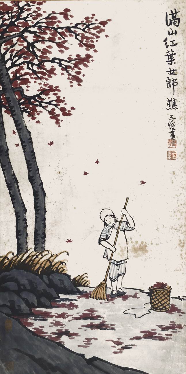 备注:款识:满山红叶女郎櫵.子恺画。钤印:石门丰氏,子恺书画。备注:xg-ms2111得自海外书画机构。