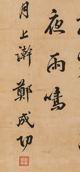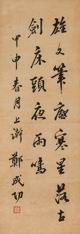 备注:题识:甲申春月上澣,郑成功。钤印:郑成功印 。【释文】雄文笔底寒星落,古剑床头夜雨鸣。备注:(140428bj-bl。得自书画机构。zhx。