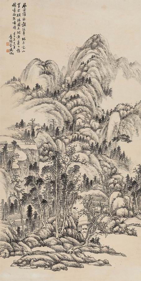 备注:《山庄雨霁图》 题识:壬午冬十二月,袌鋗居士吴徵。钤印:吴待秋、袌鋗居士。备注;(1805bj-jd得自书画机构)。