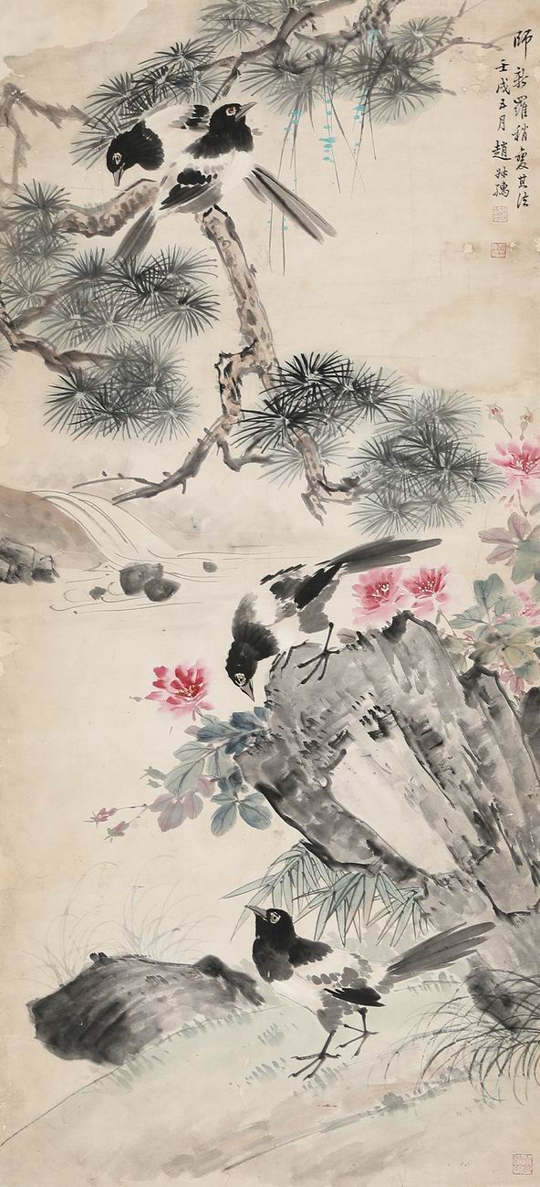 备注:创作年代:壬戌1922。款识:师新罗稍变其法,壬戌五月,赵叔孺。钤印:赵氏叔孺(朱) 赵时印(白)。备注:2601zj-xlys得自书画机构。