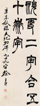 备注:释文:1.朔十六日武……而广;2.了元示于山……发己酉;3.忠中将会稽……触似行;4.多末解解者……令史建;5.月诏遣中书……费宇行;6.视更二字合五十字。款式:辛未秋临吴纪功碑,九十九字徐三庚。钤印:,[三庚日利] [金罍山馆]。备注:2401xm-bl得自书画机构。