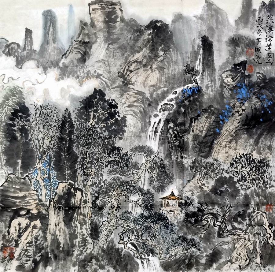 备注:款识:松溪论道图丙戌冬黄明亮。 钤印:明亮之印.黄。备注:0701bj-jx。