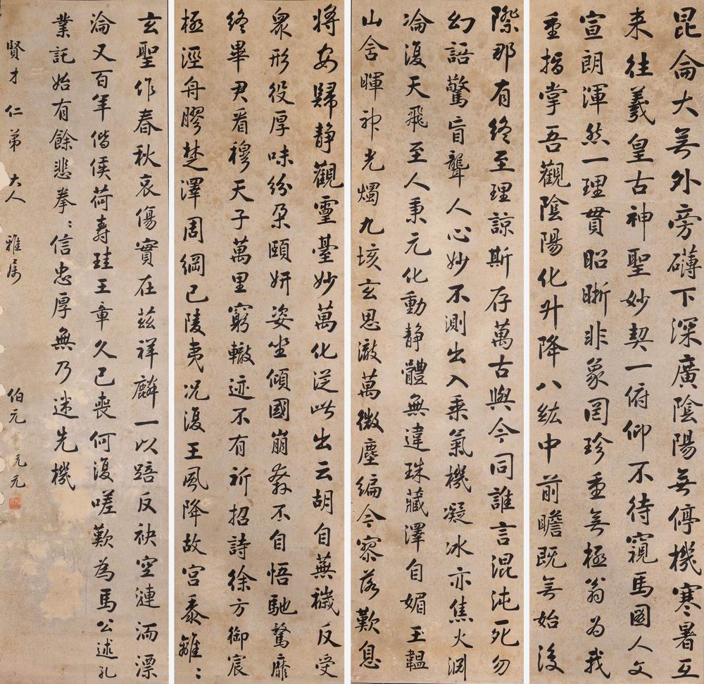 备注:款识:贤才仁弟大人雅属,伯元阮元。钤印:伯元。备注:(220804xm-bl)得自书画机构。释文:'昆仑大无外,磅礴下深广。......拳拳信忠厚,无乃迷先几。[宋代] 朱熹 斋居感兴二十首▪昆仑大无外。
