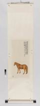 备注:创作年代:壬寅1962年。款识:百战功勋佐汉家,霜蹄万里踏龙沙。归来换得萧疏意,遍体秋风染红花。壬寅暮春,湛如马晋画。钤印:马晋之印(白)、湛如(朱)、一洗空(朱)。备注:2604zj-xlys。