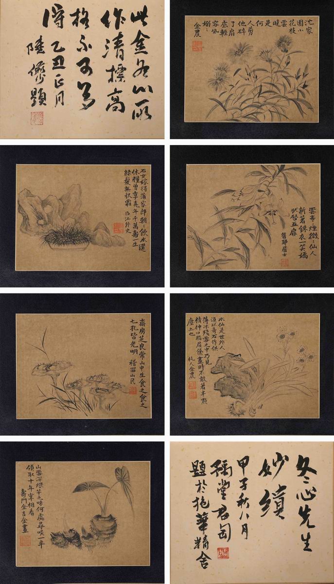 备注:花卉6开书法2开 册页。陆俨少题。钱君匋题。款式:金农。钤印:金农私印。备注:2404rb-bs。
