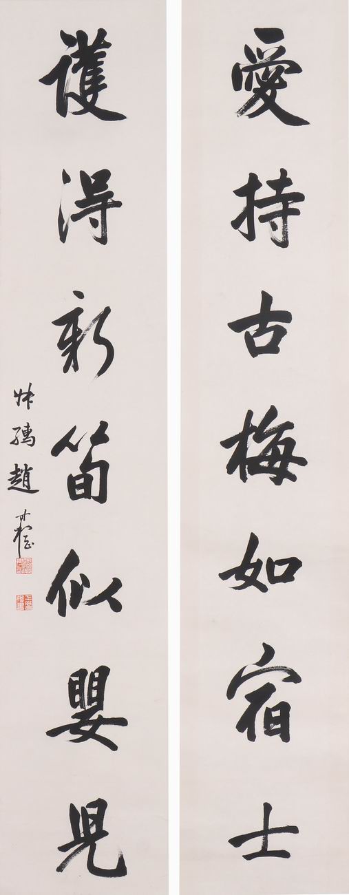 备注:款识:叔孺赵时棡。钤印:钤印:鄞赵时棢字叔孺之印、七十岁以后书。译文:爱持古梅如宿士,护得新笋似婴儿。备注:2303gz-xy得自书画机构。2409bj-zhx。
