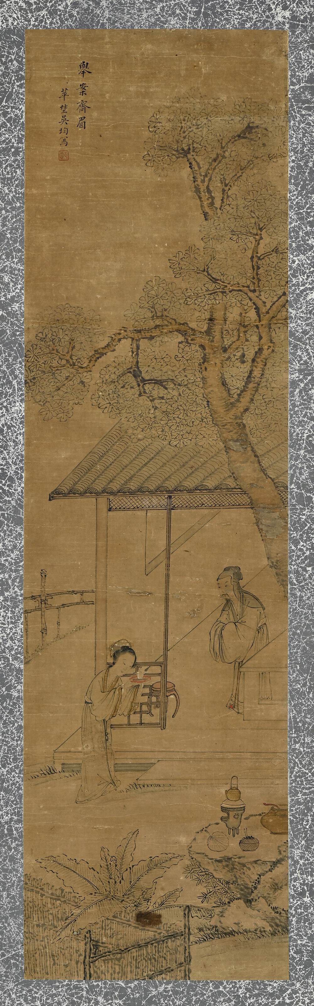 备注:款識:舉案齊眉。蘋埜吳均寫。 鈐印:「平心」。备注:2306rb-jj得自海外。