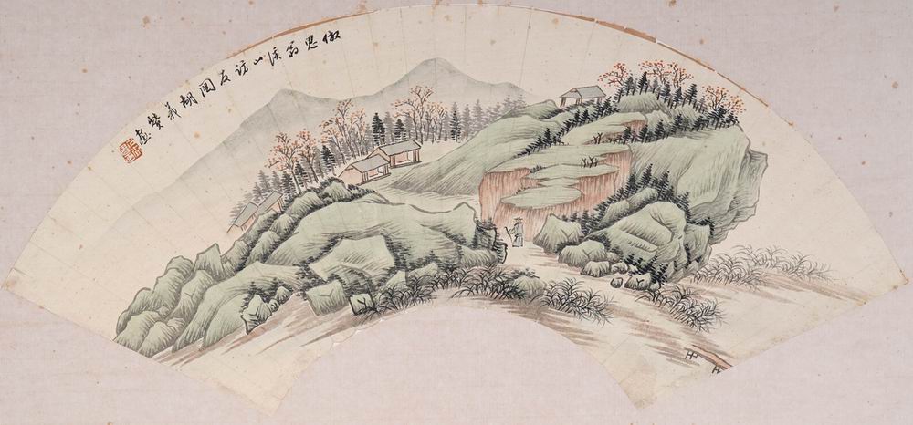 备注:款式:仿思翁溪山访友图,胡义赞画。钤印:石查书画。备注:2401nj-szz得自书画机构。