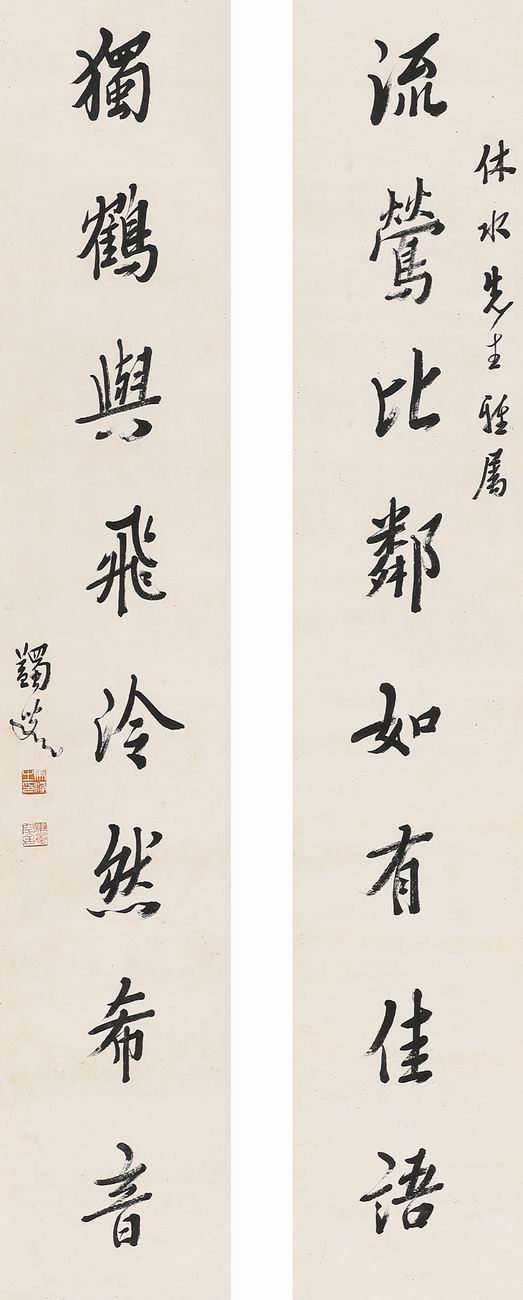 备注:款识:流莺比邻如有佳语,独鹤与飞泠然希音。休水先生雅属,蠲叟。钤印:马浮之印(白), 毕竟空舍(朱)。备注:2604zj-xlys。