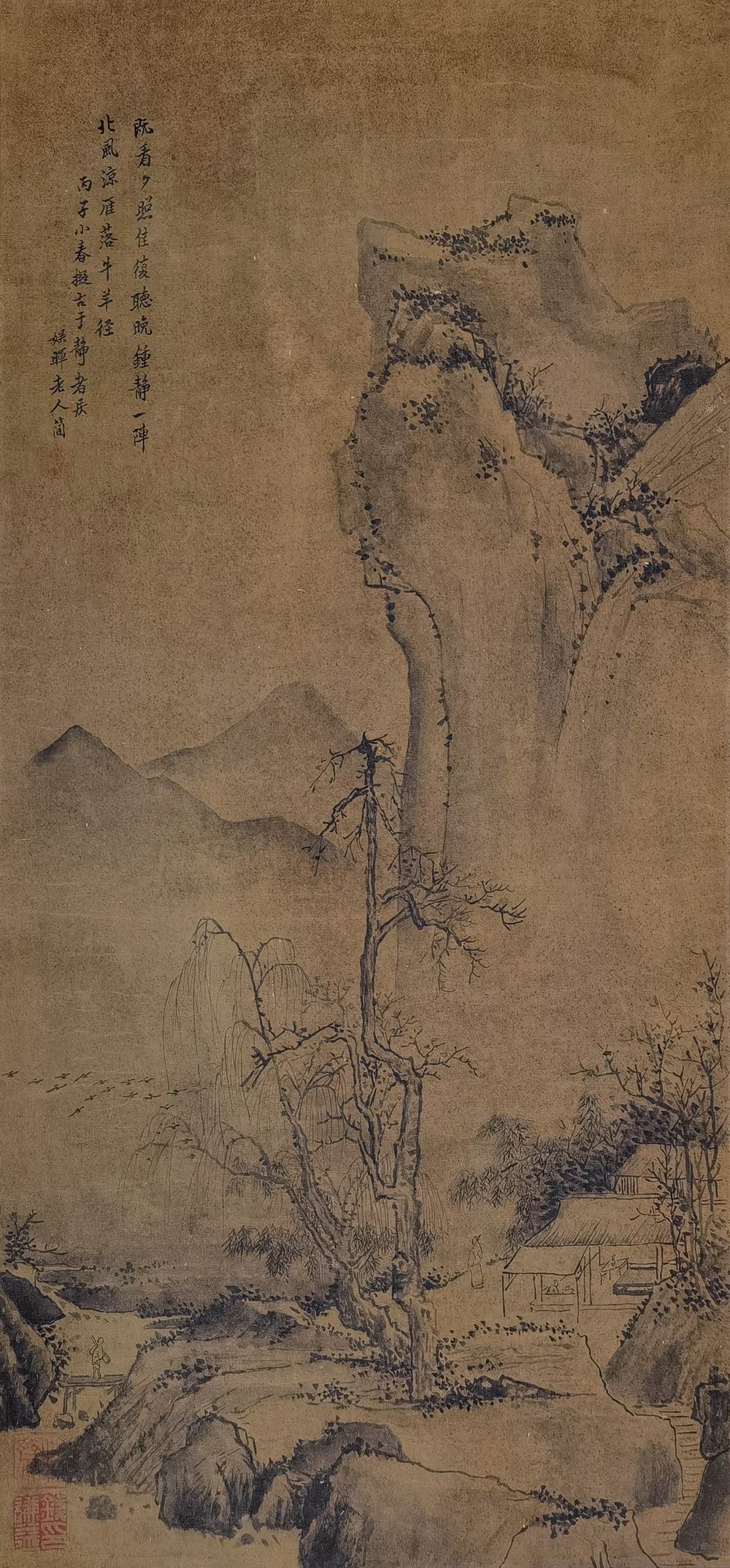 备注:题识:丙子小春,拟古于静者居,娱晖老人简。 钤印:高简之印 鉴藏印:牧斋、钱谦益印(钱谦益(1582—1664),字受之,号牧斋,晚号蒙叟、东涧遗老、绛云老人。 [33]学者称虞山先生。明末清初诗坛的盟主之一。明万历三十八年(1610年)进士第三。授翰林院编修。天启时参修《神宗实录》。) 。备注:(1307bj-bl)得自书画机构。