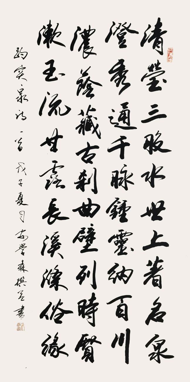 备注:款式:趵突泉诗一首 戊子夏月 安学森撰联书。钤印:安学森,备注:得自自作本人。