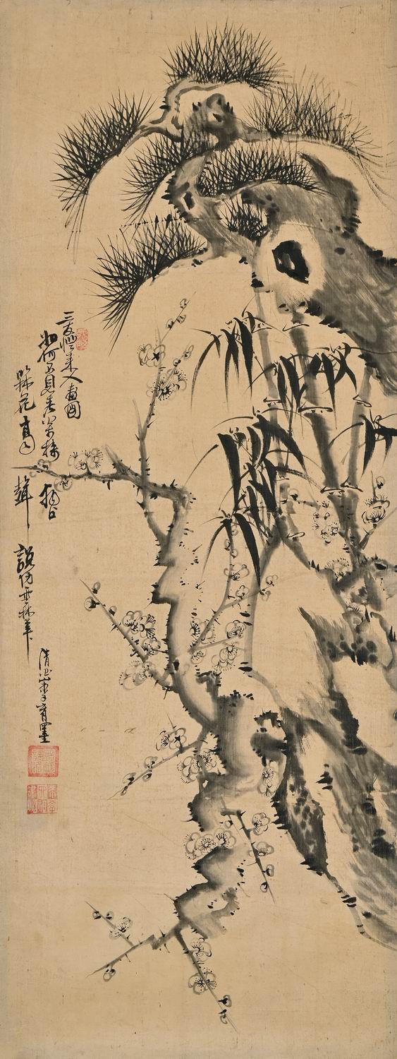 备注:款识:三友愷來入畫圖,如何不見臺按接,猶占梅花高聲說。清白山李育墨。钤印:希孝六祖畫意。备注:2301rb-jj得自海外。