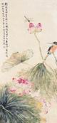 备注:创作年代: 甲申(1944)年作。【款识】鲜荷出水好丰神,一片风摇连理身。同梦绾回上髻影,双眼妒煞有情人。甲申春三月,抑非居士陆翀写。 【钤印】陆翀私印(白文)、抑非居士(朱文)。 备注:1309rb-dj得自海外。2312gd-rd、